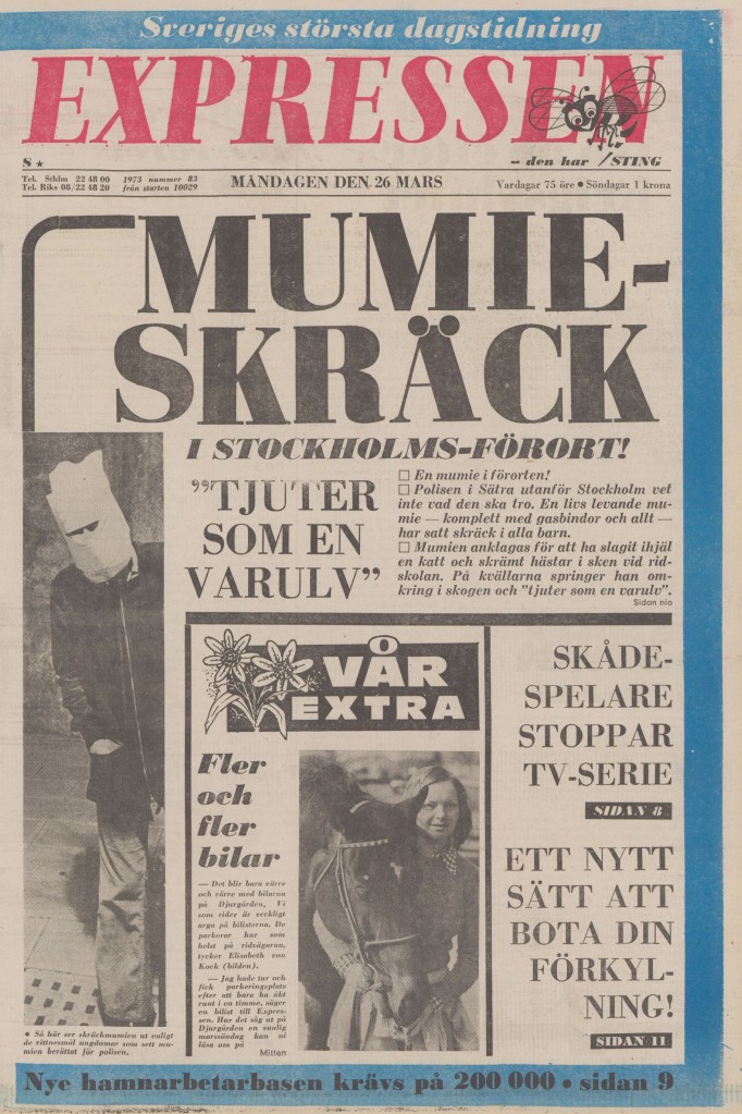 Lagom till Halloween kommer det en liten artikel som fokuserar på de gamla skräckserietidningarna som blev vansinnigt populära under några få år på 1970-talet. Ni får även följa med ner i Kungliga bibliotekets samlingar där skräcken slumrar i mörka bokmagasin. Men de mystiska figurerna mumien, varulven och vampyren envisades med att ta sig ut också i det verkliga livet. Även det får ni läsa mer om i artikeln. Trevlig läsning!
