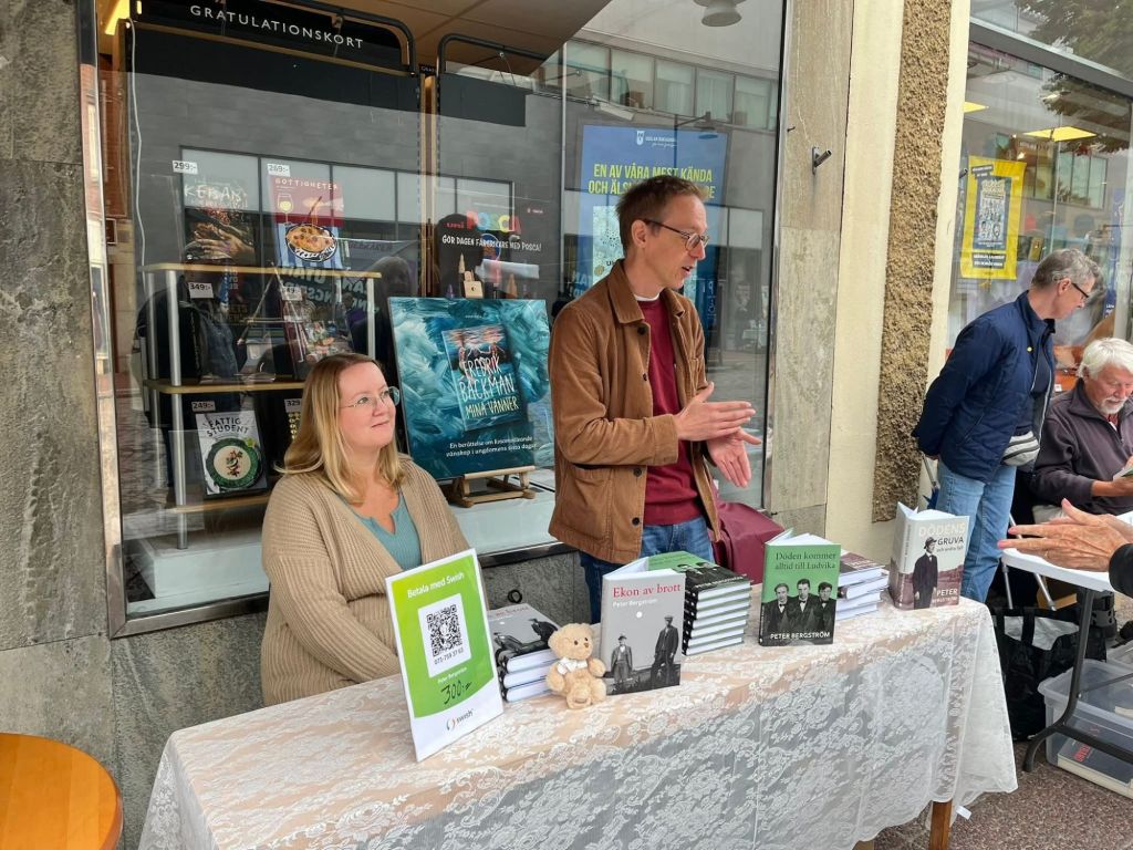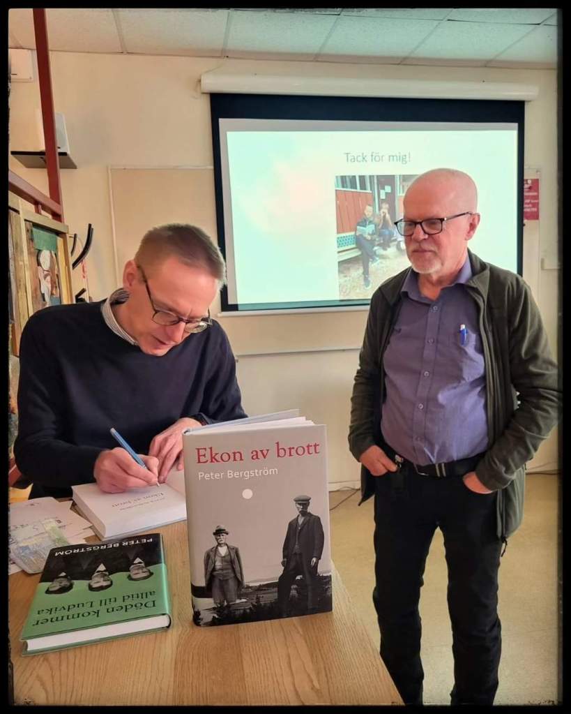 29 februari 2024 kl. 9-10 föredrag på Falu stadsbibliotek om min bok Ekon av brott, försäljning och signering av böcker efteråt.