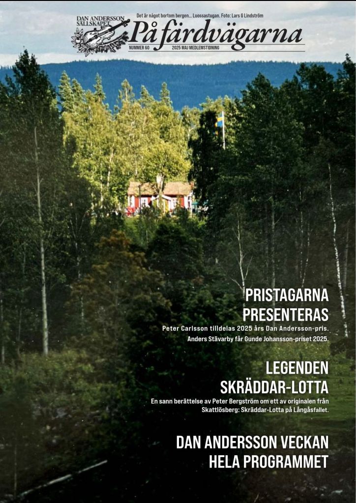 9 februari 2024. Nu finns det en artikel av mig i Dan Andersson-sällskapets tidskrift På färdvägarna att läsa! Där berättar jag om den fascinerande slagrutemannen Otto Wahlenberg och hans jakt på mördaren Albert Granlund vid Uvberget 1913.