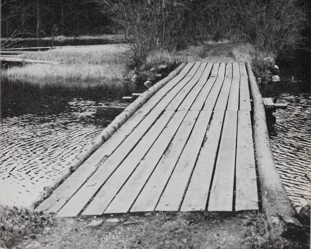 Då vi nu på nytt passerade Frötjärnsbron och kom in i det lilla skogsområdet vid Stenberget skyggade plötsligt det annars så lugna stoet i sin jämna trav, fnös till, stegrade sig och ville vända. Förgäves försökte den vane hästkarlen Cornelius med alla medel driva stoet framåt. Det lyckades emellertid inte. Han måste kliva ur släden och gripa tag i betseltygen för att kunna hålla henne i ett säkrare grepp.