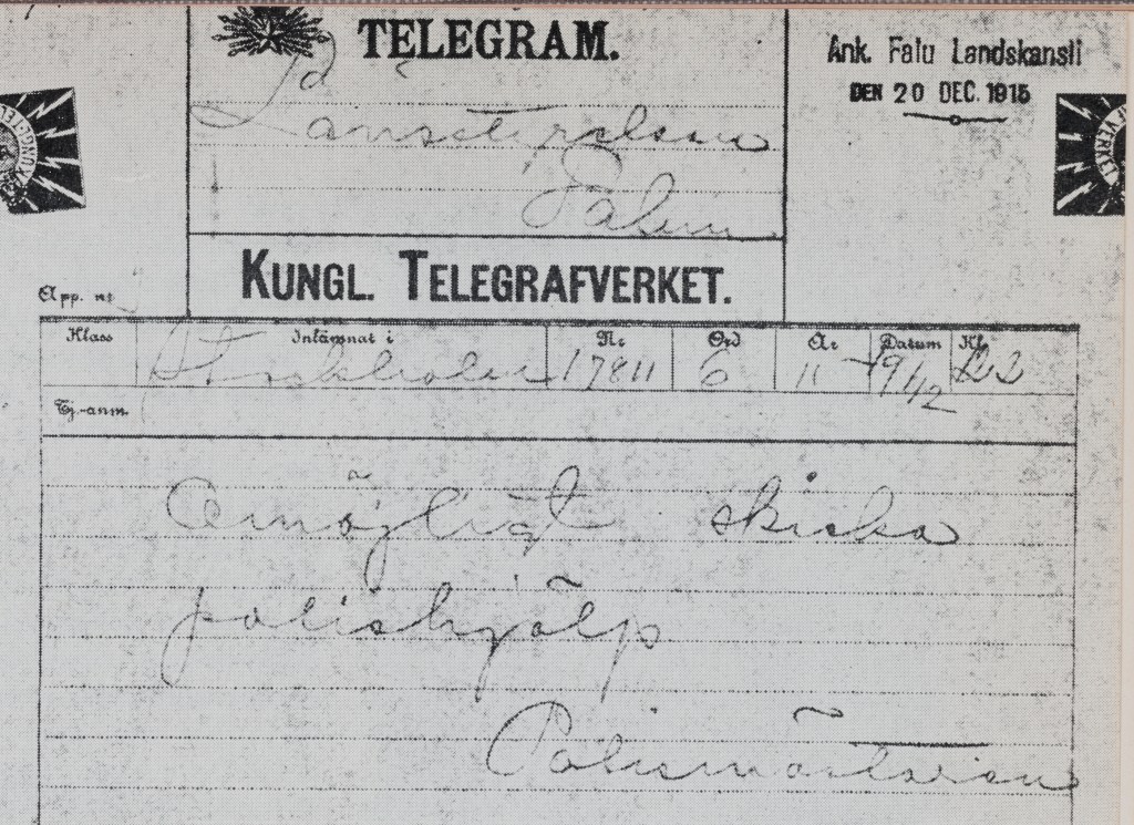 Kronofogde Hjalmar Rosberg inser att polisen i Grangärde inte klarar av fallet på egen hand och skickar en begäran till landskansliet i Falun om att få låna ytterligare två detektiver. Rosberg reser själv till Grangärde för att assistera. Länsstyrelsen skickar i sin tur begäran vidare till polisen i Stockholm med förhoppningen att de ska vilja hjälpa till, men det är en from förhoppning. Den 20 december kommer svaret från polismästare Wilhelm Tamm, ”Omöjligt skicka polishjälp”. Så istället skickas Ludvikas kronolänsman Einar Gottliebsson och Borlänges polisuppsyningsman Gustaf Larsson.
